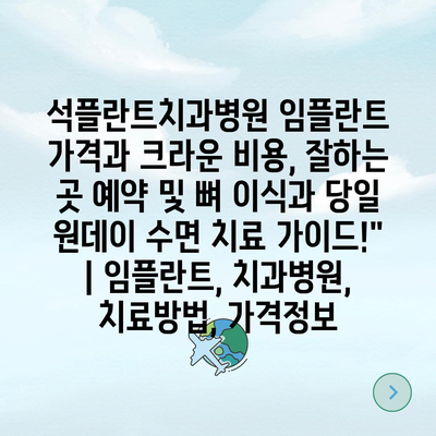석플란트치과병원 임플란트 가격과 크라운 비용, 잘하는 곳 예약 및 뼈 이식과 당일 원데이 수면 치료 가이드!” | 임플란트, 치과병원, 치료방법, 가격정보